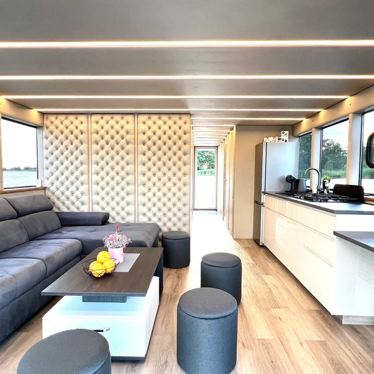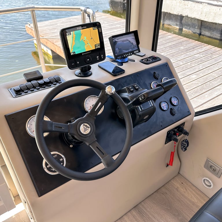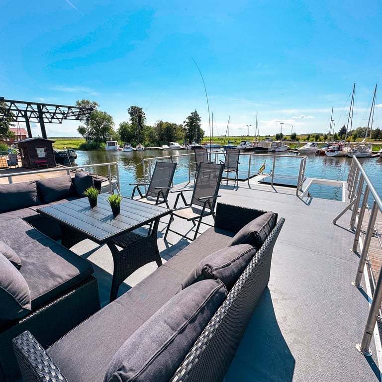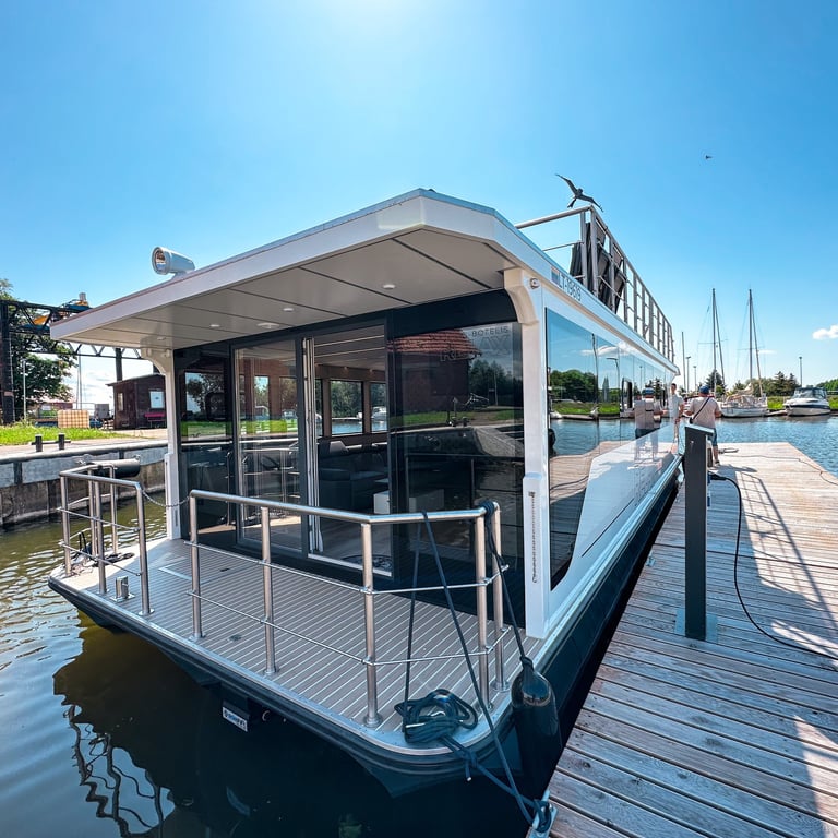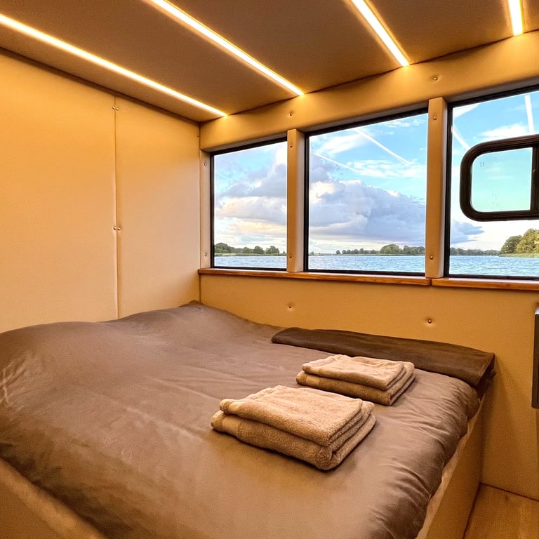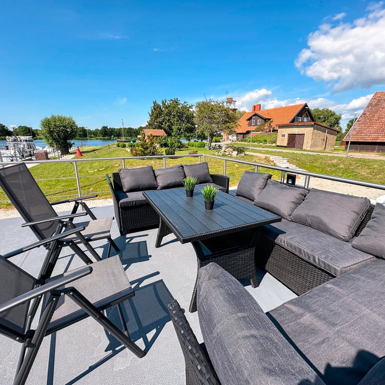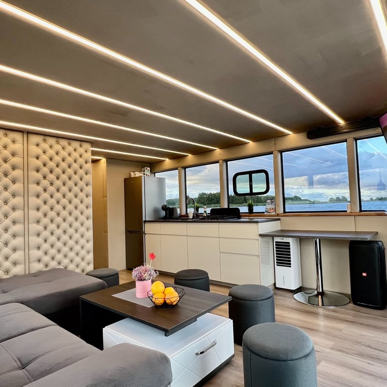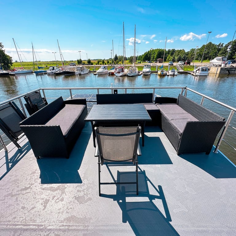 Šis modernus ir autonomiškas dviaukštis laivas sukurtas Jūsų maloniam laisvalaikiui ant vandens. Pirmame aukšte įrengta erdvi poilsio zona su kompaktiška virtuve, dviem miegamaisiais ir vonios kambariu. Erdvūs galiniai ir priekiniai deniai leis Jums mėgautis saulės spinduliais, tyru vėjo ošimu, Pamario paukšcių giesmėmis. Antrame šio išskirtinio laivo aukšte įrengta erdvi ir patogi lauko terasa patogiai stebėti kraštovaizdį ar tiesiog gulinėti ir mėgautis saulės spindulių terapija.